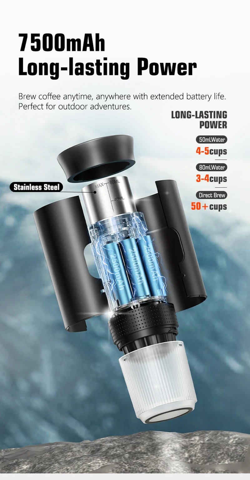 【Easy to rinse and disassemble】The portable coffee machine adopts a multi-component separation design, which is easy to clean. Small and easy to carry, you can enjoy delicious coffee anytime, anywhere.