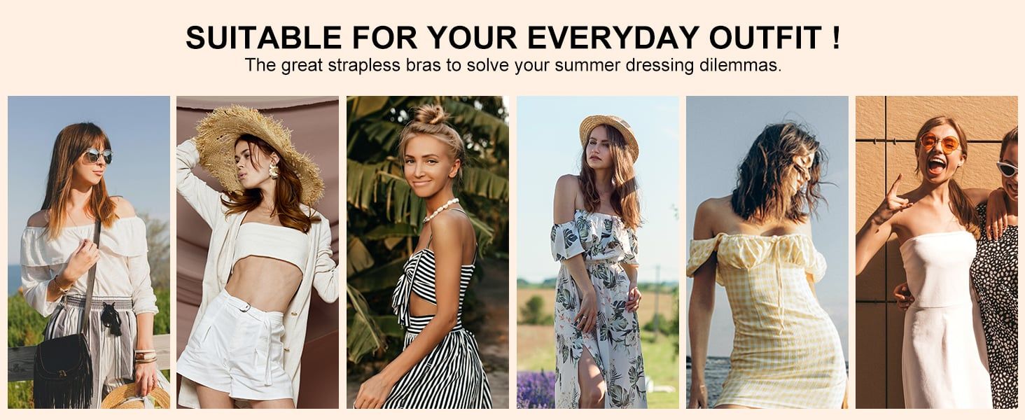Strapless bandeau bras for women are super soft and smooth to touch, breathable and sweat-absorbing, keep you cool and comfort all day, very durable and stretchable, ultra lightweight fabric allowing women to wear light without burden.