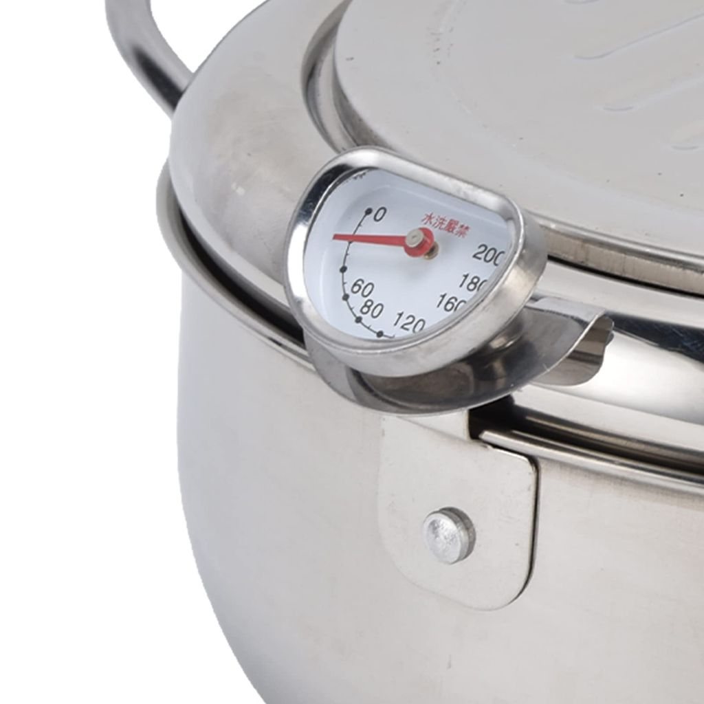 Thermometer helps to control the oil temperature and get the best taste of the food. Note: It's Celsius rather than Fahrenheit.