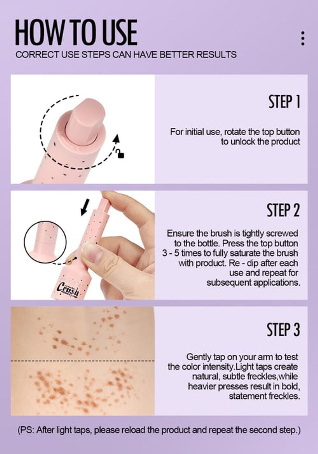 •perfectly placed clusters every time – 5 points in a single stamp, so your freckles look naturally sprinkled