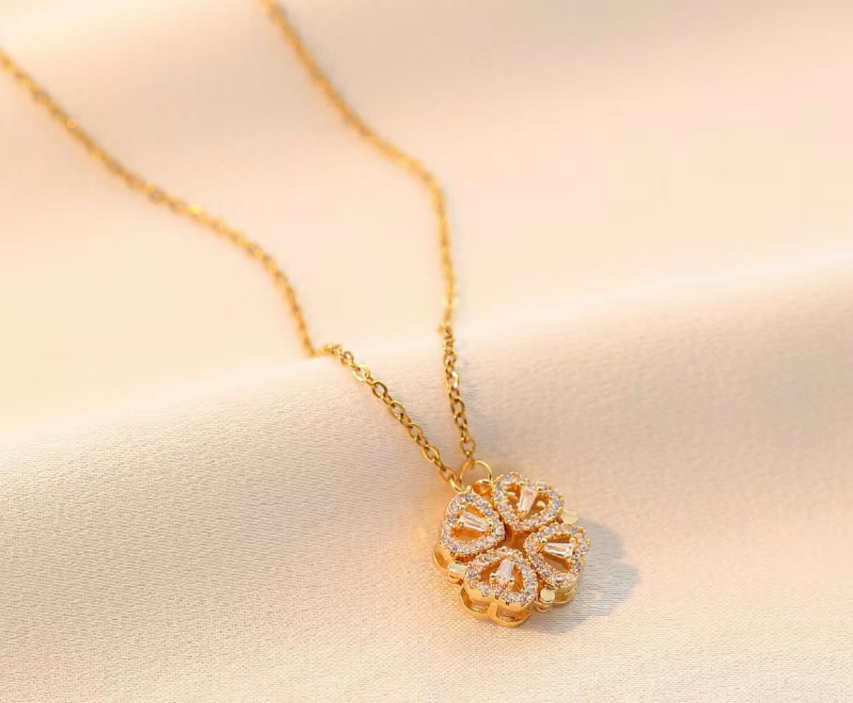 Feel lucky everyday with our lucky heart necklace. This unique and versatile piece of jewelry can be worn as a four-leaf clover or as four hearts. The pendant is adorned with sparkling cubic zirconia stones, creating a mesmerizing and eye-catching effect. It makes a perfect gift for any special person in your life, or simply a great addition to your own jewelry collection.